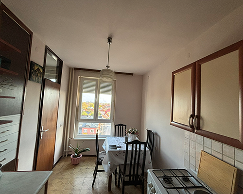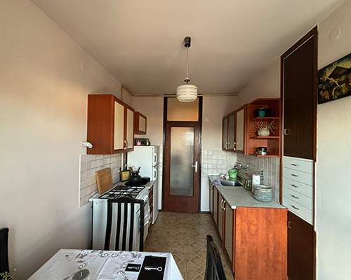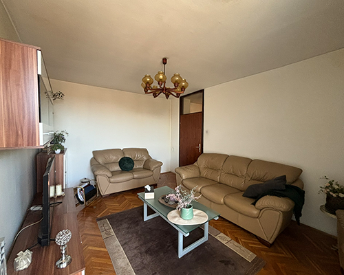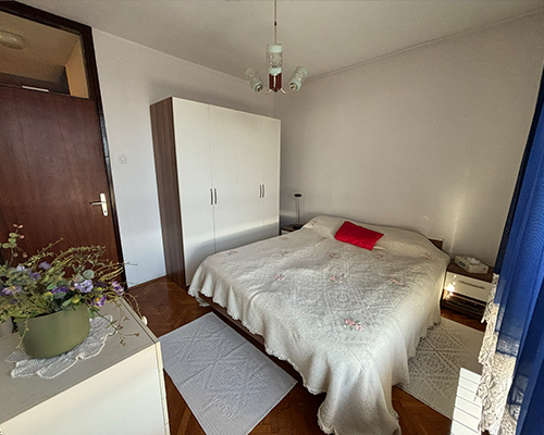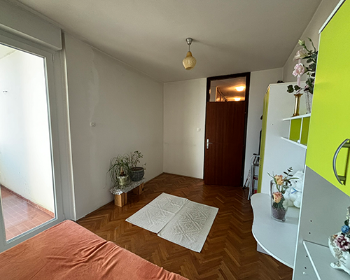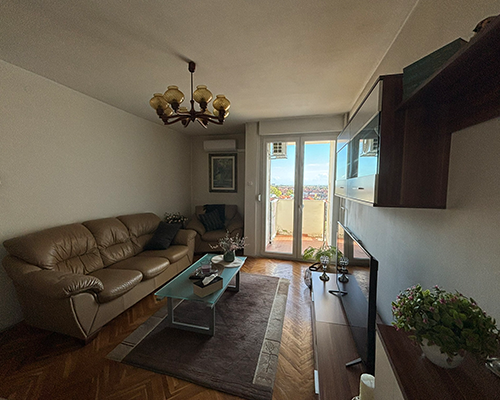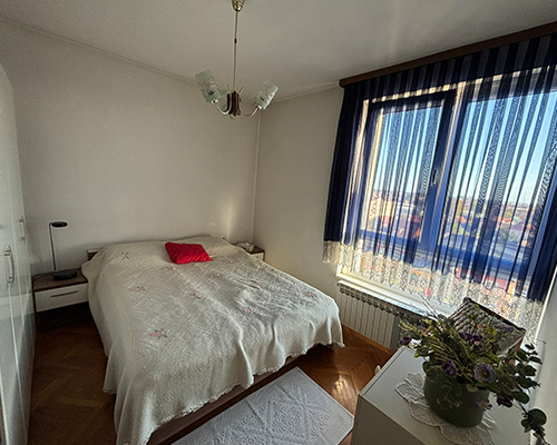 Nalazi se na tre?em katu zgrade, te se sastoji od dvije spava?e sobe, dnevnog boravka, kuhinje sa ostavom, kupaone, odvojenog wc-a i dva balkona. Ima dva klima ure?aja, PVC stolariju i protuprovalna vrata.